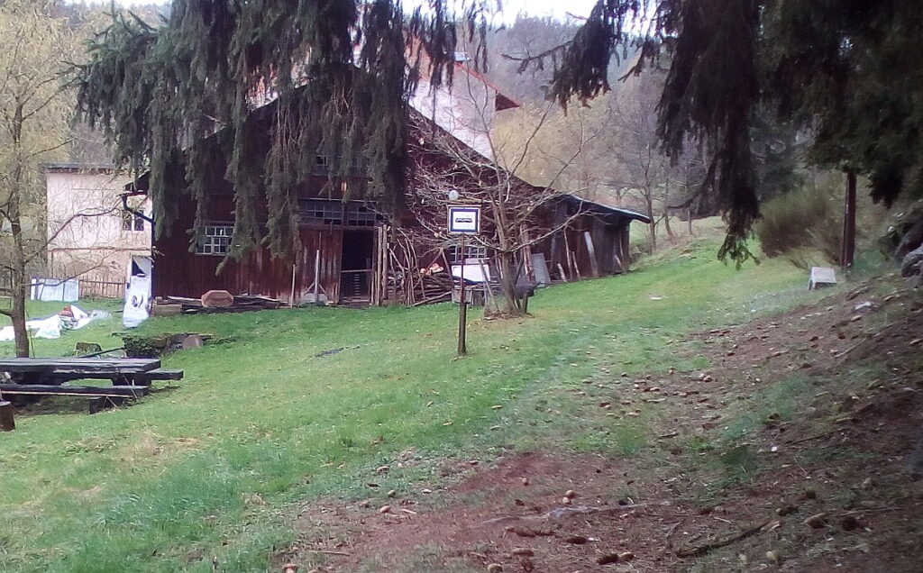 Cesta dál plyne podél Kosího potoka, pod Třebelí mě míjí skupinka mládeže. Ti to berou jako sportovní záležitost, takže střídají chůzi s během a rychle mi mizí v dáli. Postupně překračuji silnici Planá – Černošín, později i Planá – Lestkov. Před sebou mám Michalovy Hory a přemýšlím o návštěvě tamního hostince, abych podpořil svou vůli několika doušky zrzavého moku. Je to ale ještě pěkný kus cesty. Počasí se trochu umoudřilo, občas vysvitne i slunce. V protisměru mě míjí desítky cyklistů jedoucích cyklotrasu 25 km (žabaři), která jde v tomto úseku souběžně s mojí padesátkou. V mém směru nejde nikdo. Před Michalkami mi pomalu ale jistě dochází síly. Mám za sebou asi 36 km. Vylézám na silnici nad obcí a při představě, že bych musel kvůli hospodě sejít z trasy, vzdávám myšlenku na pivo a pokračuji dále.