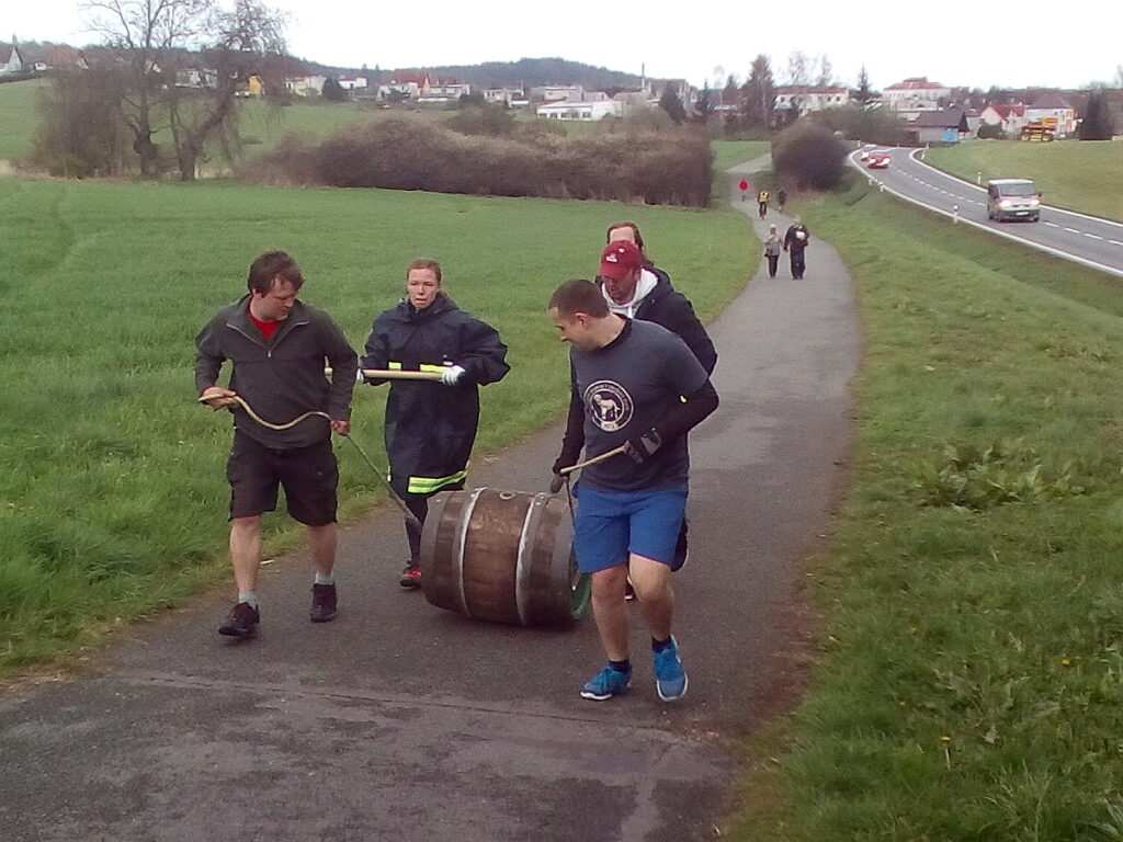 Poslední vážnou překážkou na zbývající trase se stal Jilmový potok 3 km před Dolním Kramolínem. Cesta jej překračuje brodem, což v létě nebo na kole není problém, ale při deseti nad nulou se mi brodit zrovna nechce. Naštěstí kus proti proudu objevuji v korytě ztrouchnivělý kmen, s jehož pomocí se mi daří vodní tok překonat. Vítěznému finále stojí v cestě posledních 10 km. Cestou do Kramolína mě podruhé předbíhá (skutečně stále během) mládežnická úderka. Dali si v Michalkách oběd a tak jsme si vyměnili pozice. No, nyní za mnou již nikdo jiný není. Poslední zajímavost se odehrála mezi Chodovkou a Planou, kde probíhaly jakési hasičské závody s válením sudu.